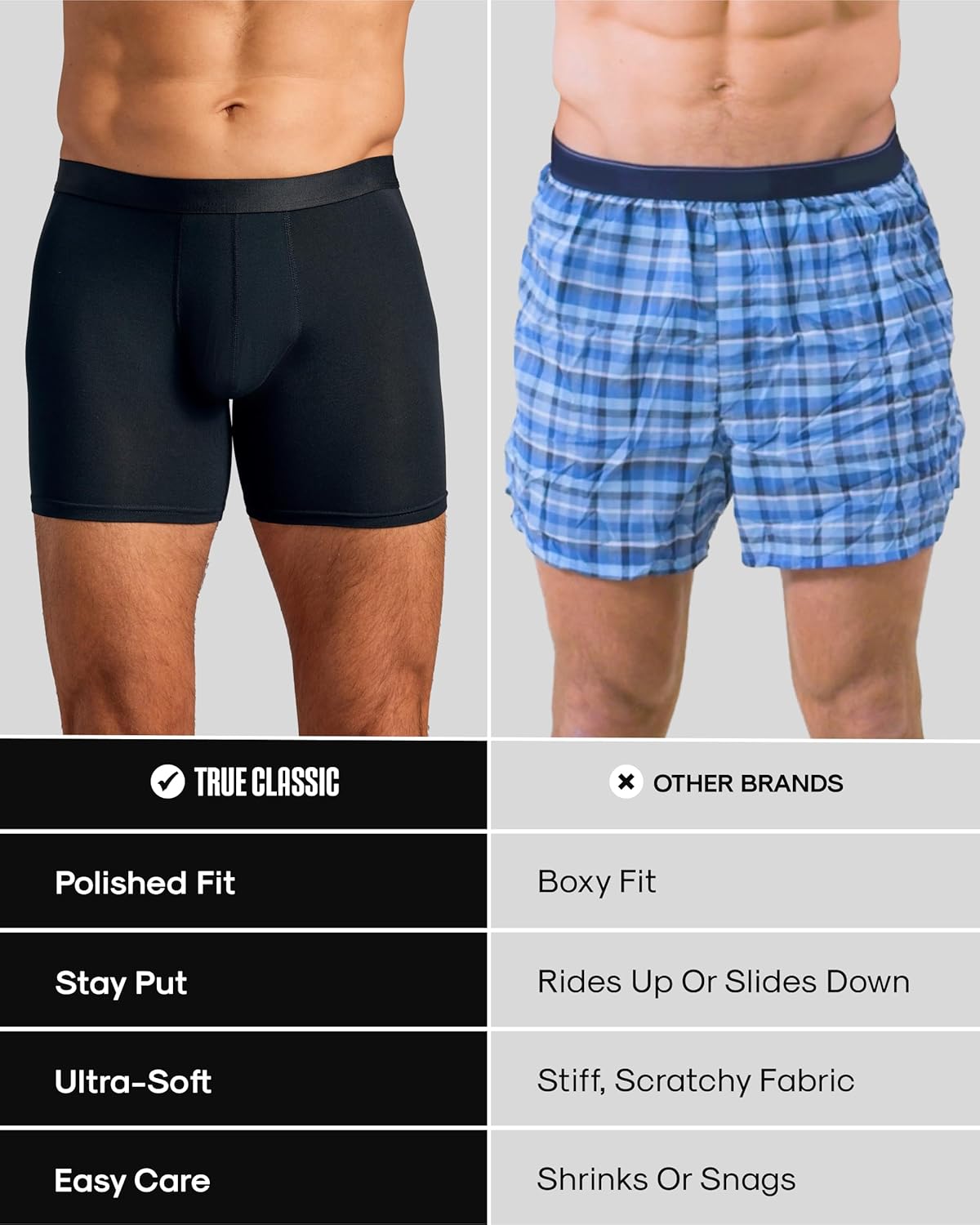 • NO BUNCHING, NO RIDING UP: Our mens underwear packs are designed to hold shape wash after wash. The no-dig stretch waistband, smooth seams, and minimal shrinkage (about 5% on low heat) keeps the fit consistent—durable comfort in men’s boxer briefs.
